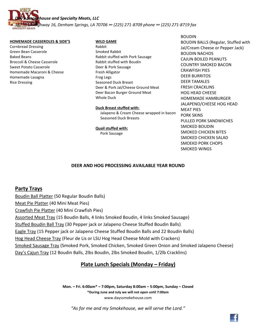 Day's Smokehouse & Specialty Meats Menu (Update 2025)